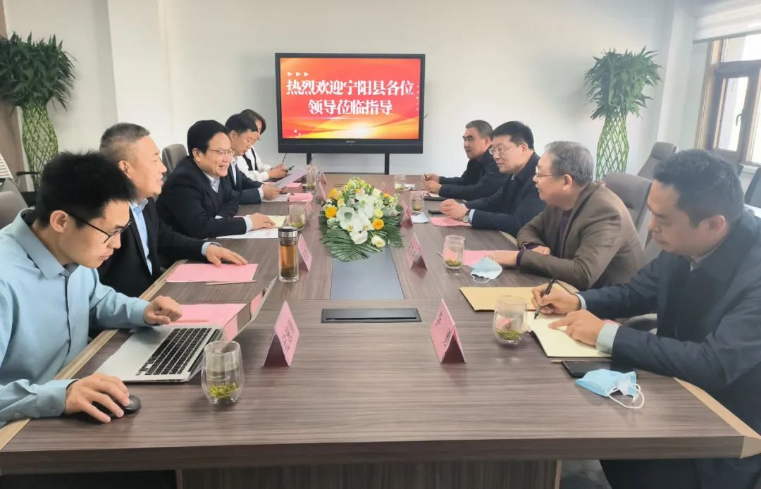 4月7日,寧陽(yáng)縣人民政府黨組成員、寧陽(yáng)縣高新技術(shù)產(chǎn)業(yè)開(kāi)發(fā)區管理委員會(huì )主任賈德果,寧陽(yáng)縣政協(xié)黨組成員、副主席,寧陽(yáng)縣文化和旅游局局長(cháng)石玉奎,寧陽(yáng)縣文化和旅游局黨組成員、副局長(cháng)李勇,泰安友邦現代農業(yè)科技有限公司董事長(cháng)張輝一行四人到集團下屬泰山出品公司座談交流并參觀(guān)。泰山文旅集團黨委書(shū)記、董事長(cháng)時(shí)貞強,集團籌備組成員王厚哲、桑勝高參加座談。