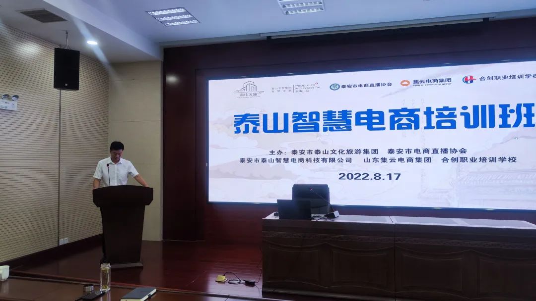 泰山文旅集團(tuán)黨委委員、籌備組成員王厚哲做了開(kāi)班致辭,此次培訓(xùn)班特意邀請(qǐng)了合創(chuàng)職業(yè)培訓(xùn)學(xué)校的5位專(zhuān)業(yè)電商和直播講師,課程在直播、短視頻等方面都有涉及,希望大家認(rèn)真學(xué)習(xí),做好新媒體工作。近年來(lái),在市委、市政府堅(jiān)強(qiáng)領(lǐng)導(dǎo)下,我市按照“產(chǎn)業(yè)為基、電商為市、人才為盾、品牌為魂”的發(fā)展思路,不斷夯實(shí)電商基礎(chǔ),提升服務(wù)能力,電商產(chǎn)業(yè)取得了較快發(fā)展,產(chǎn)業(yè)規(guī)模和效益取得了明顯成效。在此電商大環(huán)境下,泰安市泰山智慧文旅集團(tuán)與泰安市電商直播協(xié)會(huì)合作共創(chuàng),成立泰安市泰山智慧電商科技有限公司,將共同打造泰安高品質(zhì)直播電商平臺(tái),開(kāi)展直播帶貨、產(chǎn)品供應(yīng)鏈、直播培訓(xùn)等相關(guān)業(yè)務(wù)。進(jìn)一步擴(kuò)大“泰山出品”品牌影響力,推動(dòng)我市電子商務(wù)高質(zhì)量發(fā)展。