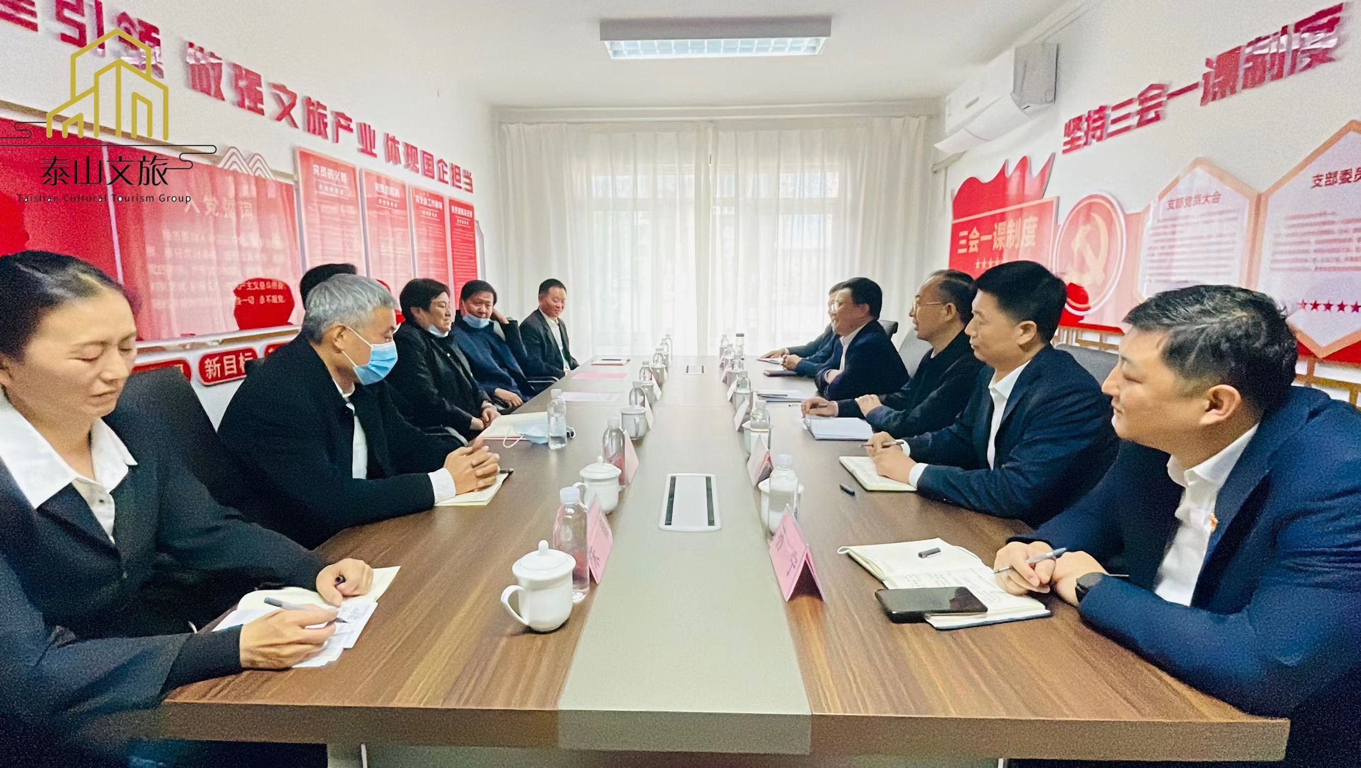 起航新征程,奮楫正當(dāng)時(shí)。10月14日,普照賓館劃轉(zhuǎn)移交座談會(huì)在泰安市泰山文化旅游集團(tuán)有限公司(文中簡稱:泰山文旅集團(tuán))召開。集團(tuán)黨委書記、董事長時(shí)貞強(qiáng),黨委副書記劉傳紅,黨委委員、紀(jì)委書記、監(jiān)察專員李國華,黨委委員、副總經(jīng)理王厚哲,黨委委員、會(huì)展集團(tuán)負(fù)責(zé)人井立偉,黨委委員、酒店集團(tuán)負(fù)責(zé)人孫寧,及普照賓館職工代表參與座談會(huì)。