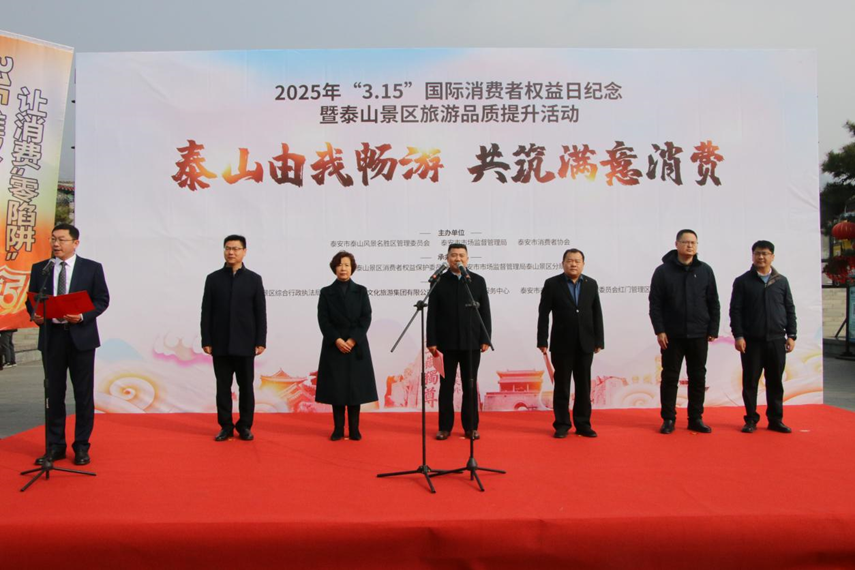 為迎接第43個(gè)“3·15”國際消費(fèi)者權(quán)益日,3月11日,泰山景區(qū)“3·15”國際消費(fèi)者權(quán)益日紀(jì)念暨泰山景區(qū)旅游品質(zhì)提升活動(dòng)在紅門游客中心廣場舉行,此次活動(dòng)旨在進(jìn)一步營造安全放心、公平誠信的消費(fèi)環(huán)境,助力景區(qū)高質(zhì)量發(fā)展。