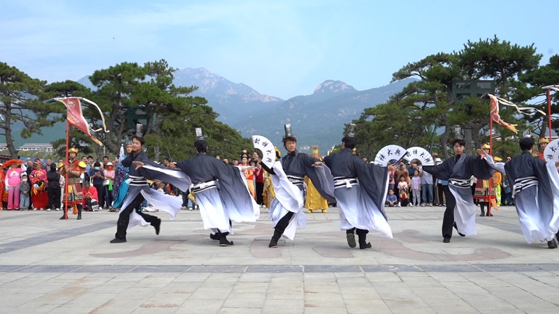 本次文化旅游節(jié)活動自10月1日持續(xù)至10月5日,活動期間設(shè)置了主題鮮明、層次豐富的特色內(nèi)容。每日10時,來自中華泰山·封禪大典的演藝團隊以《萬國來朝·盛世啟市》主題演出拉開序幕。天鼓初鳴之際,悠遠號角與鏗鏘鼓點交織共鳴,依次呈現(xiàn)開場迎賓禮、司禮官肅穆登場、舞姬書生伴唐宮人物(李治、武則天)盛裝巡游。巡游結(jié)束后,演員們將化身隱藏NPC,身著唐宮華服扮演“帝王”“貴妃”等角色,與游客展開對詩猜謎、合影互動等環(huán)節(jié)
